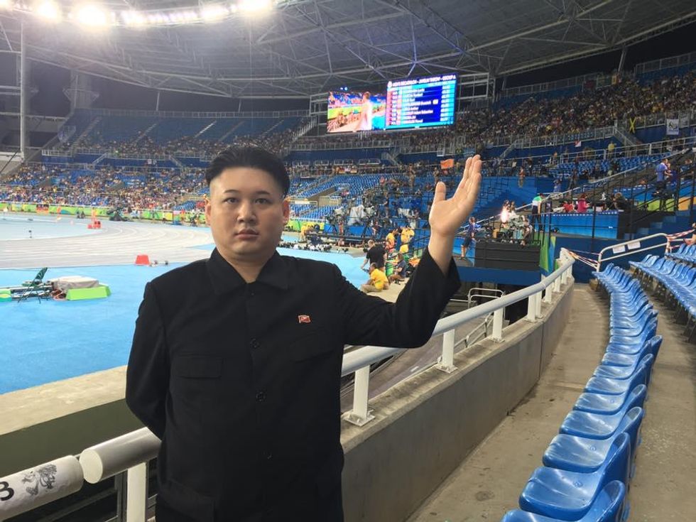 Howard, who wishes to keep his surname private but goes by the stage name "Kim Jong-um", has been professionally impersonating Kim since April 2013. He told indy100 that "last night was pretty good" and he was planning to go and watch Usain Bolt in the 200m final anyway, but thought "hey I'll go in character."