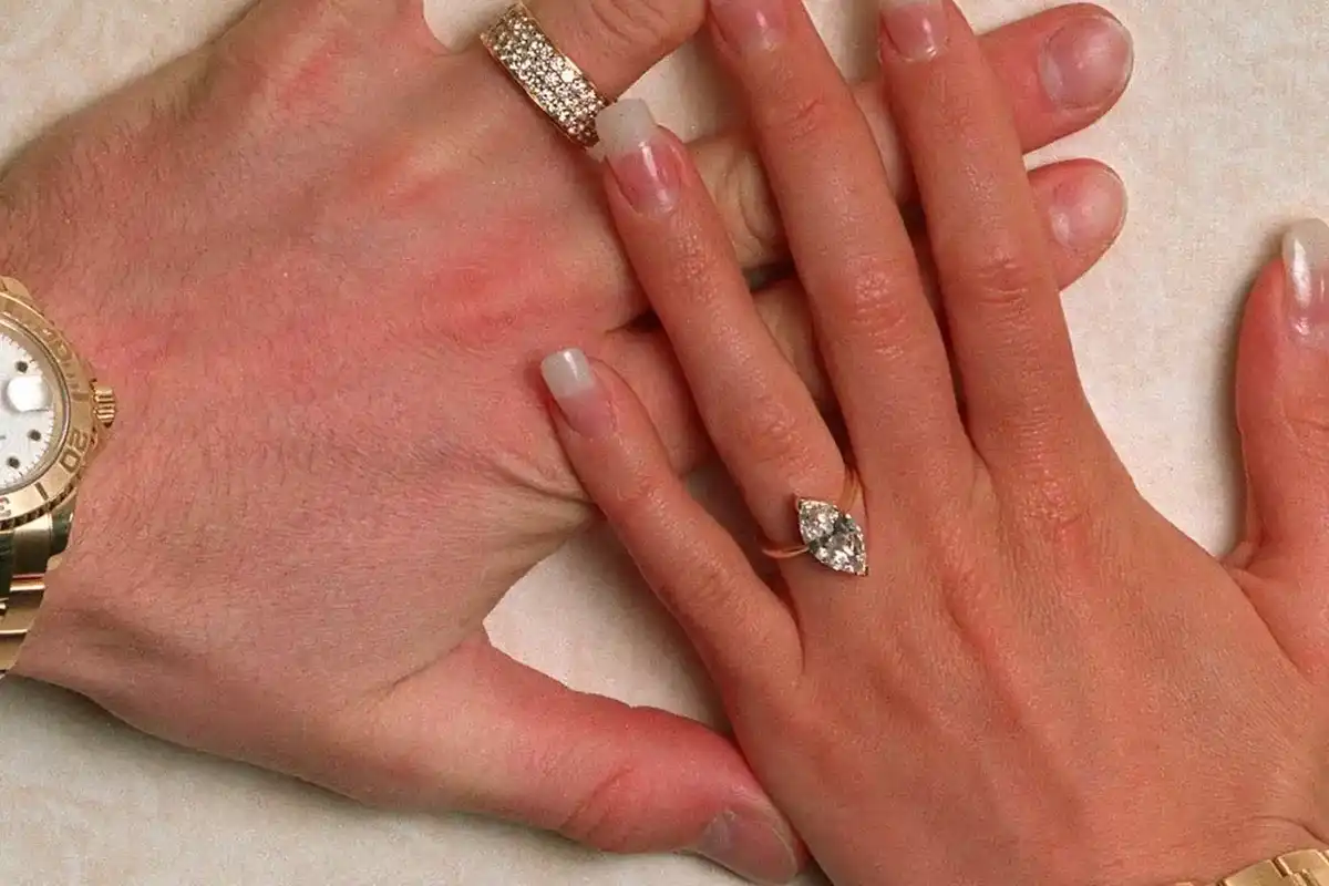 “That first ring was everything late-’90s glamour stood for", Neil says of the design choice. "The marquise shape was popular with celebrities at the time, and it matched Victoria’s high-energy Spice Girls image and the excitement of their engagement.”