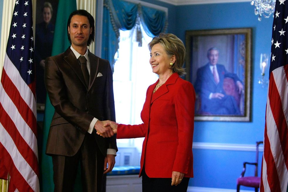Hillary Clinton, then US secretary state, and Mutassim Gaddafi (Gaddafi's fourth son), in 2009.
