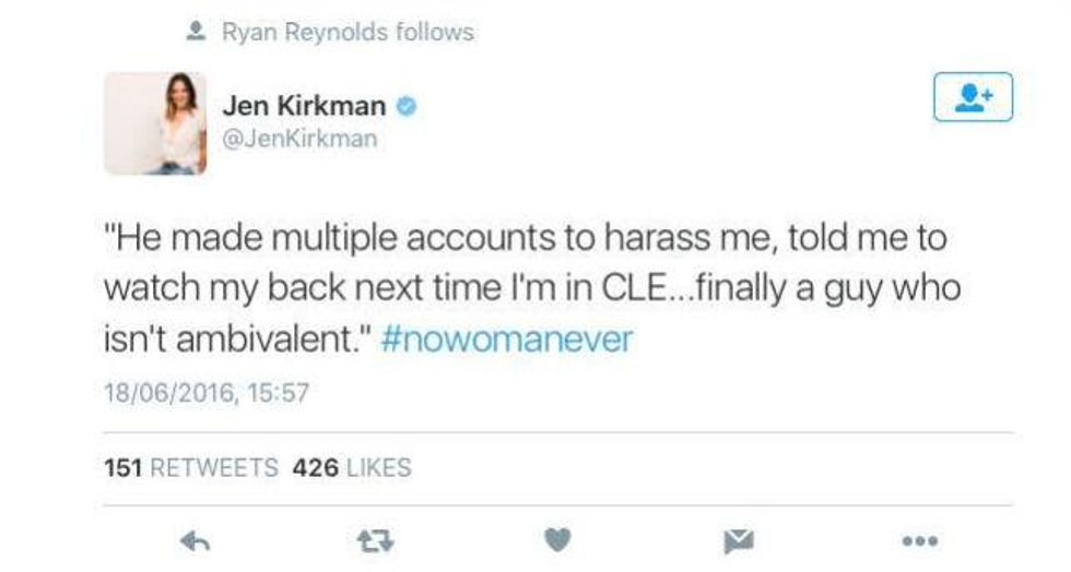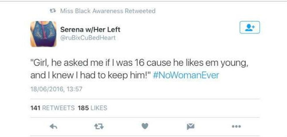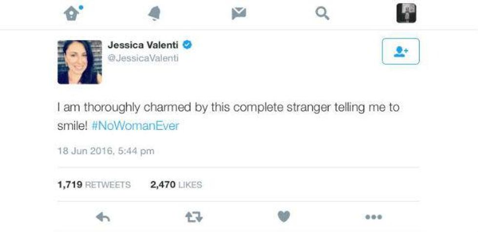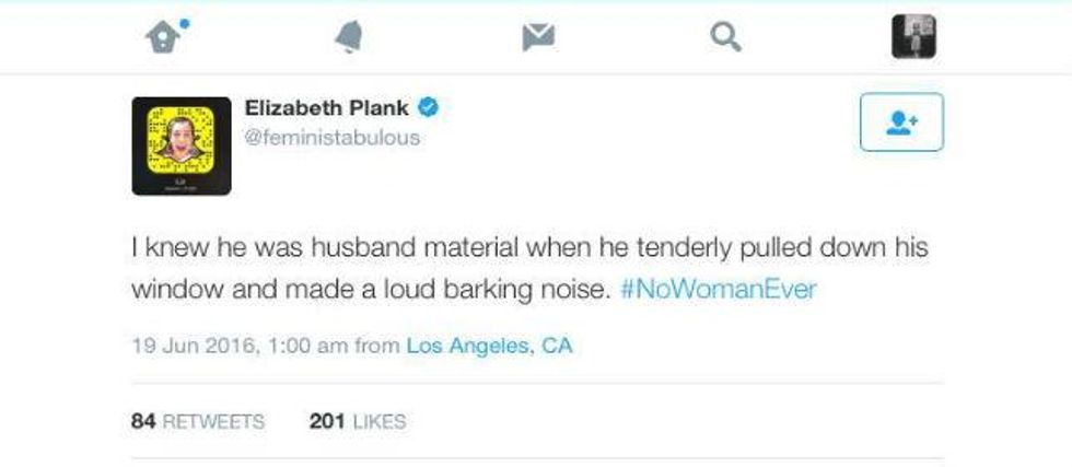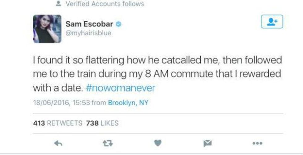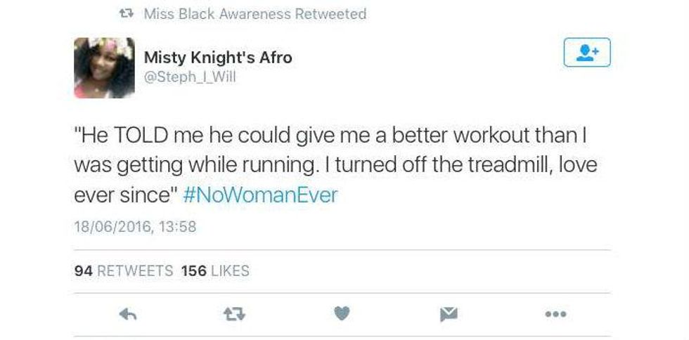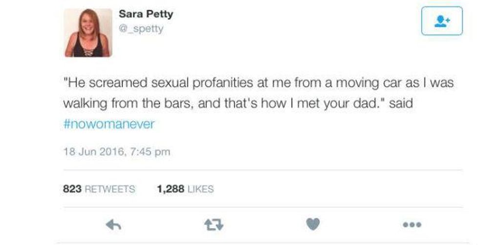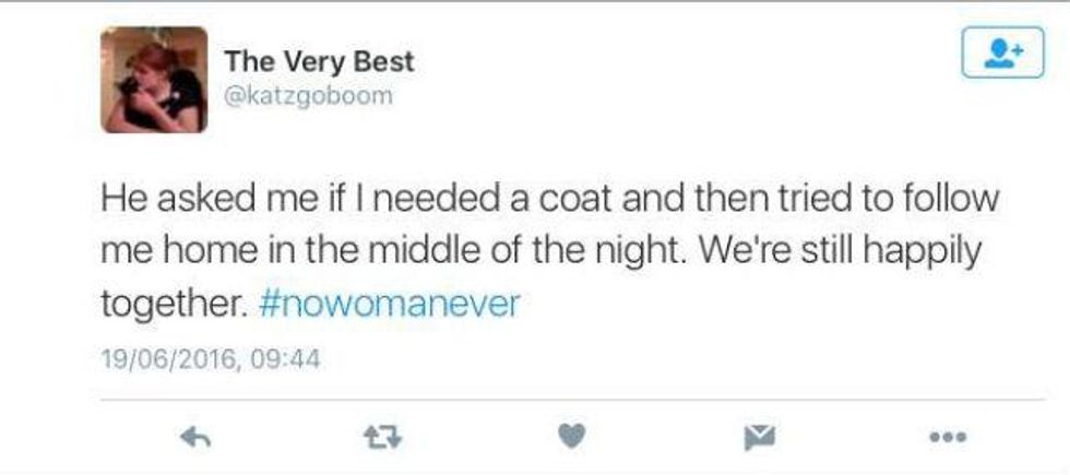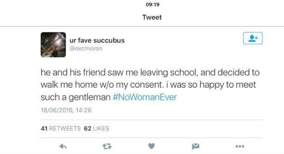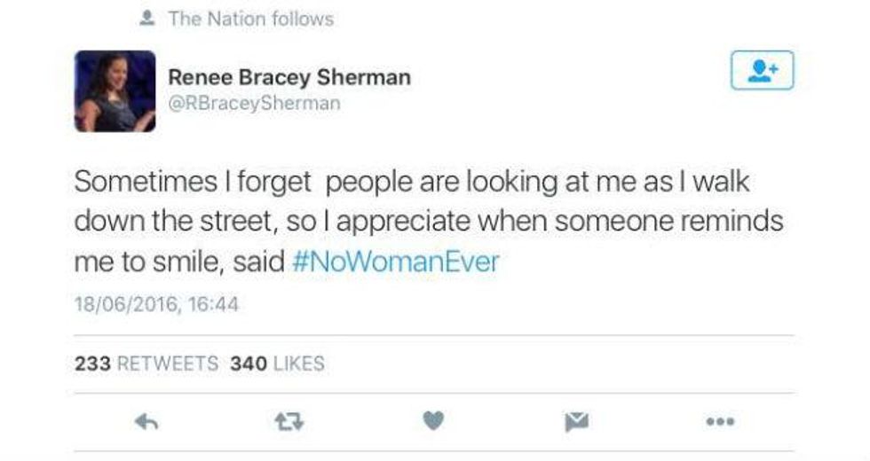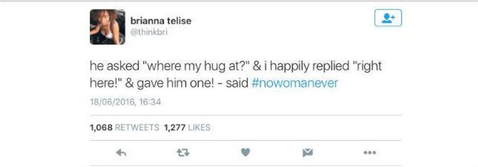Women online picked up on the sarcasm of 'No woman ever' and turned it into a hashtag to share their own experiences with every day sexual harassment...