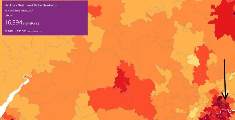 Hackney North and Stoke Newington on the other hand, leads the charge with some of the highest signatures by percentage