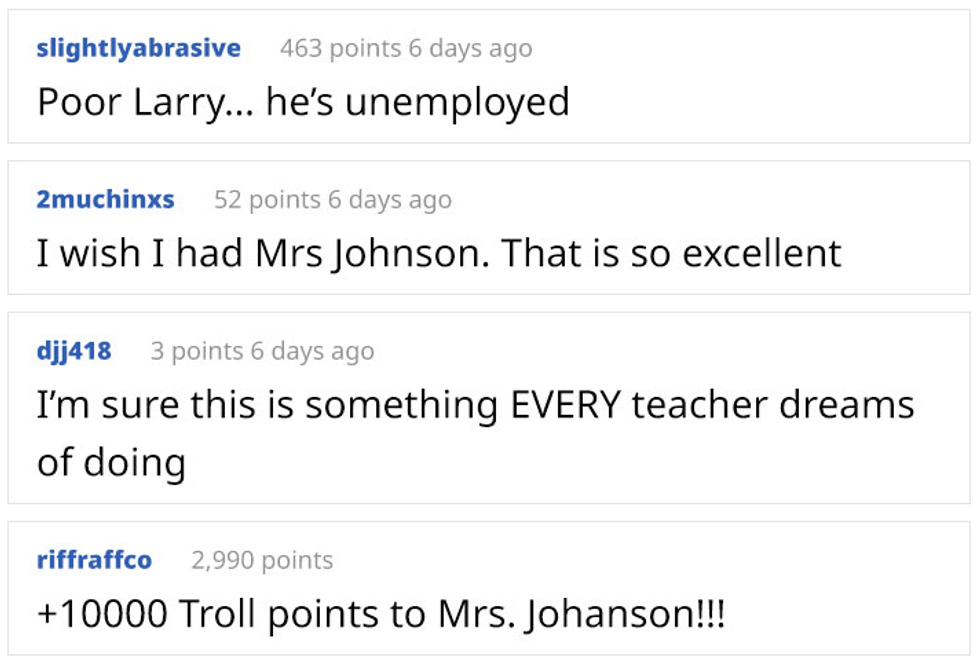 We think this student has learned a valuable lesson: don't come for Mrs Johanson.