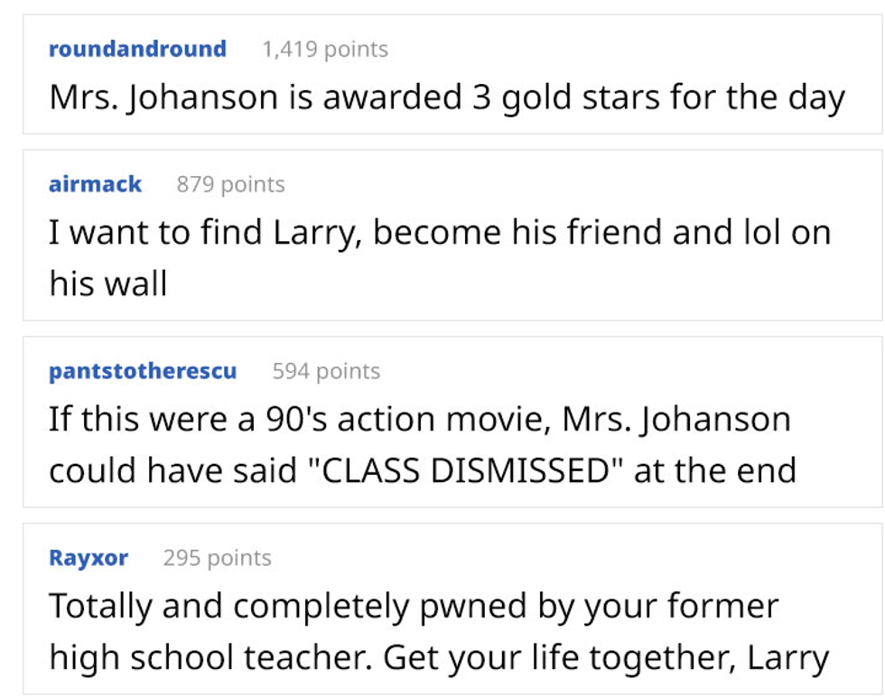 This was made evident when a student named Larry tried to take her down, calling her a "BITHC". She immediately fired back with a savage yet brilliant response, saying he's "single and unemployed".
