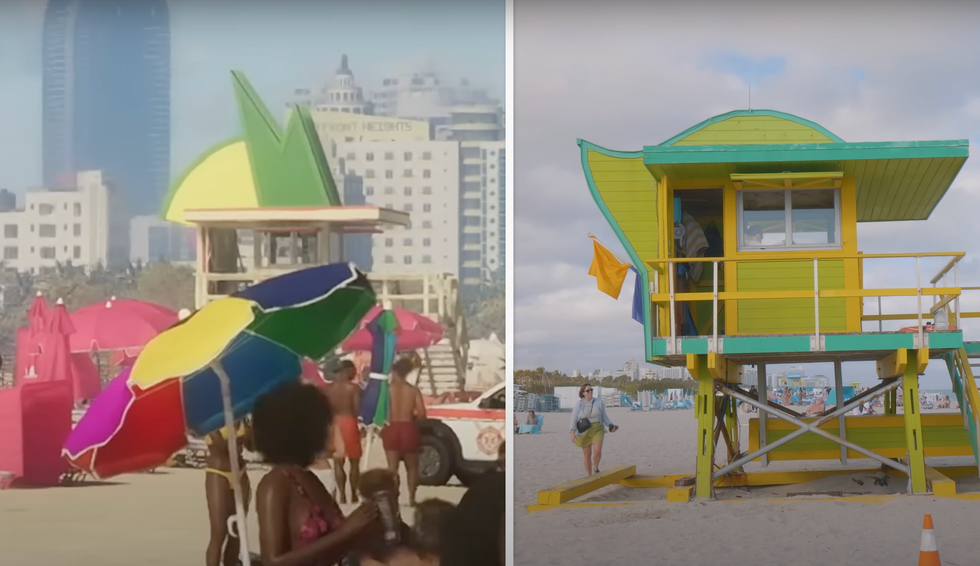 These include the positioning and the look of the lifeguard tower on Miami Beach, a connection with a hole between buildings, 'Breakwater' being called 'Boardwalk' and the partial collapse of a causeway,