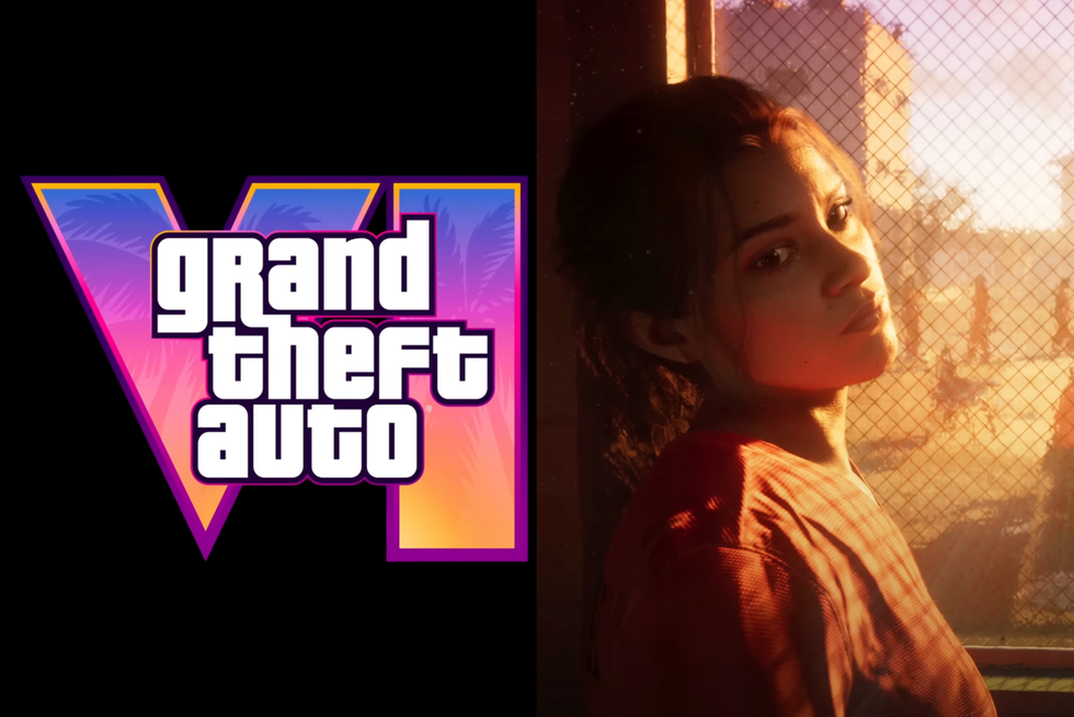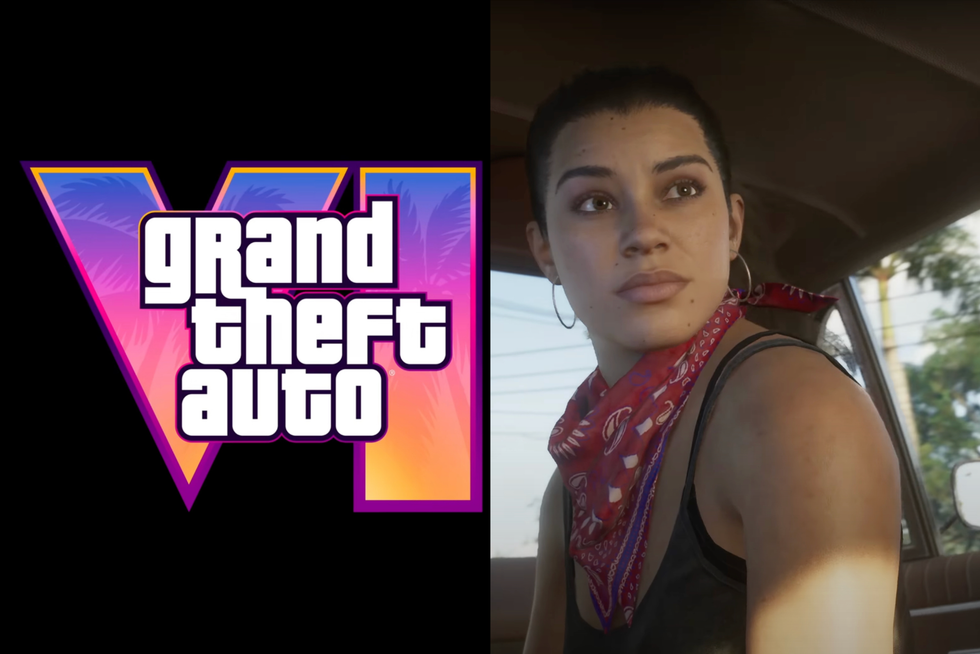 A composite image of the GTA 6 logo and a screenshot of Lucia from the trailer