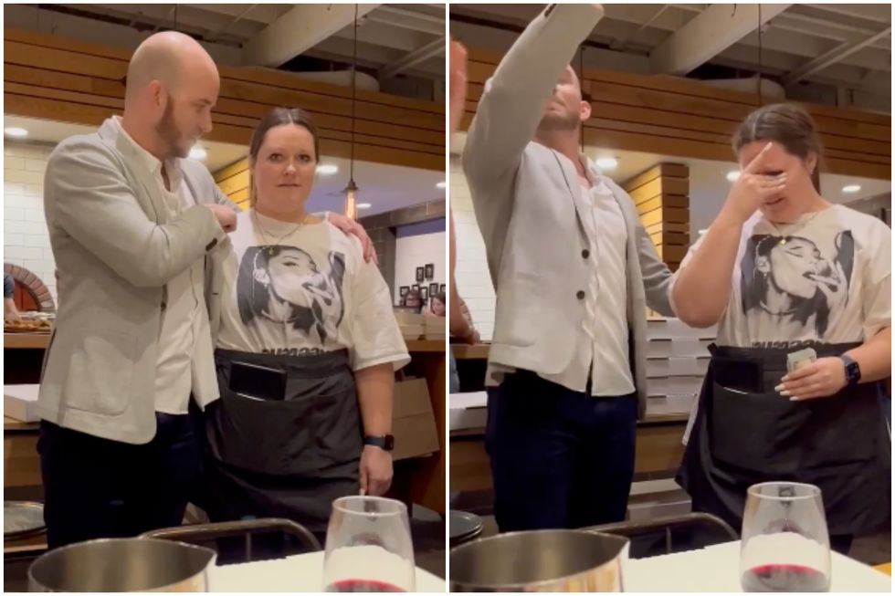 In the clip, the evening’s host Grant Wise (the CEO of Witly, a company selling marketing software for real estate agents), handed a wad of cash to Brandt, explaining: "Everybody at this table has contributed or tipped $100 for you, and for the other waitress who unfortunately had to go home because she wasn't feeling well.