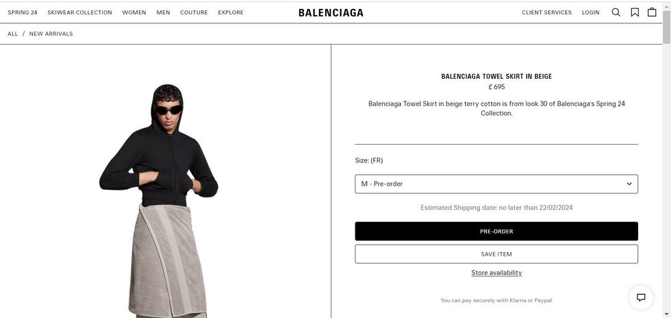 It turns the 'just out of the shower' look is in style as designer fashion house Balenciaga has just released a wrap-around towel skirt for almost $1,000 (£695).