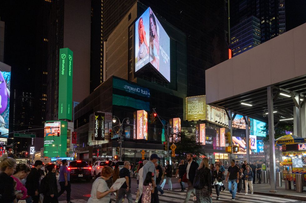 The ones in London are six metres wide and three metres high, while the New York ones are two separate ads on either side of a digital display.