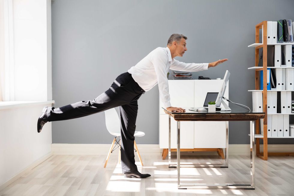Several specific exercises can be easily integrated. For desk workers, standing back bends are particularly beneficial. Simmons recommends: "You basically stand up, have your feet shoulder-width apart and have your fingers interlaced in front of you. You reach them up and overhead and look up at the ceiling, and then just lean back a little bit." He adds, "You’ll get a really nice stretch in your abs, and a bit of activation of your upper back muscles, and that can be great for just reversing that slouched, crunched-over sitting posture."
