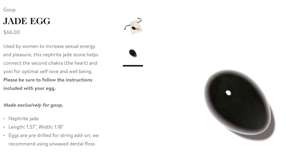 One of Goop's most outlandish products, their jade egg (AKA a vaginal dumbbell) went viral upon its release in 2017 to be "used by women to increase sexual energy, health, and pleasure".