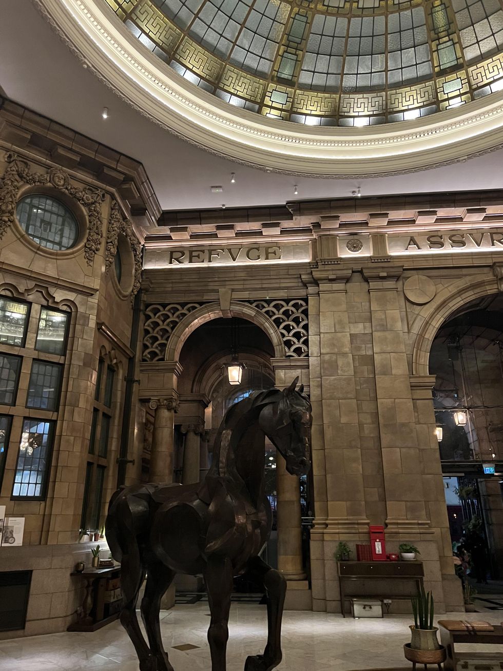 Its original, period features meet contemporary fittings and interiors including a three-meter-tall bronze horse by artist Sophie Dickens which sits in the lobby.