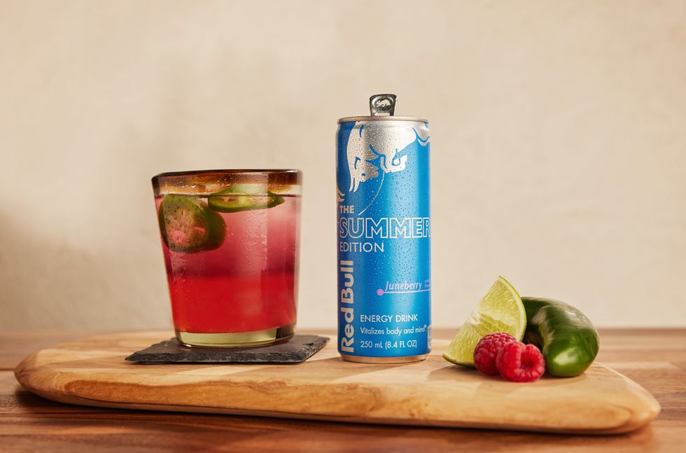 - Then top the drink with the can of Red Bull Summer Edition Juneberry flavour