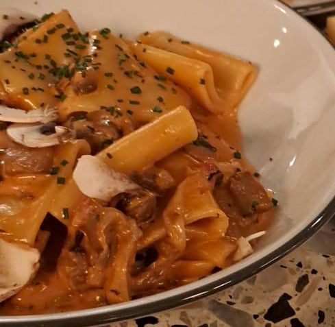 By now, I am positively intoxicated on the vegetable but that is all just microdosing compared to the main event - paccheri pasta with mushroom ragu with white mushrooms, dried porcini and sauteed girolles. Seeing it written on the menu, I feel a bit bored, how good could it be?
