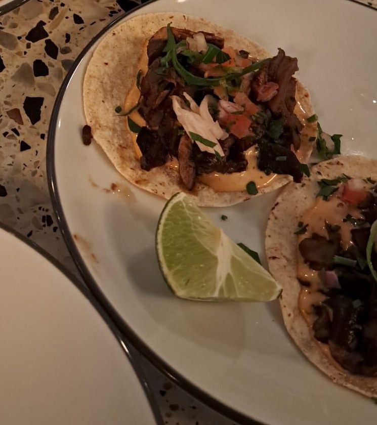 First up are portobello mushroom tacos with chipotle crema, pickled onions & salsa fresca. They are delicious. The taco is soft and airy, they are filled with the perfect amount of shredded shroom to pack it densely without causing ruptures in the carby container, and a kick of spice finishes every mouthful off nicely.