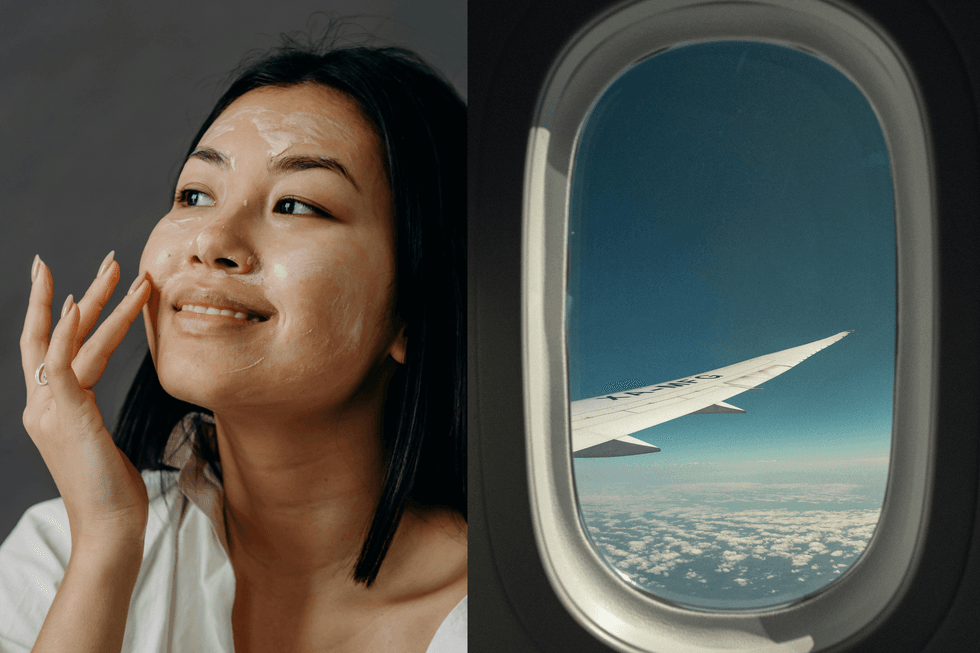 Danielle recommends skipping any drying ingredients 24 hours before your flight - that includes retinols, AHAs, and BHAs, as well as makeup wipes - with a hydrating face mist as a better alternative.