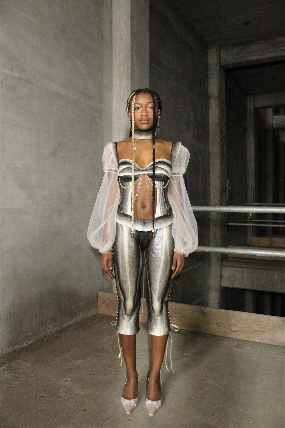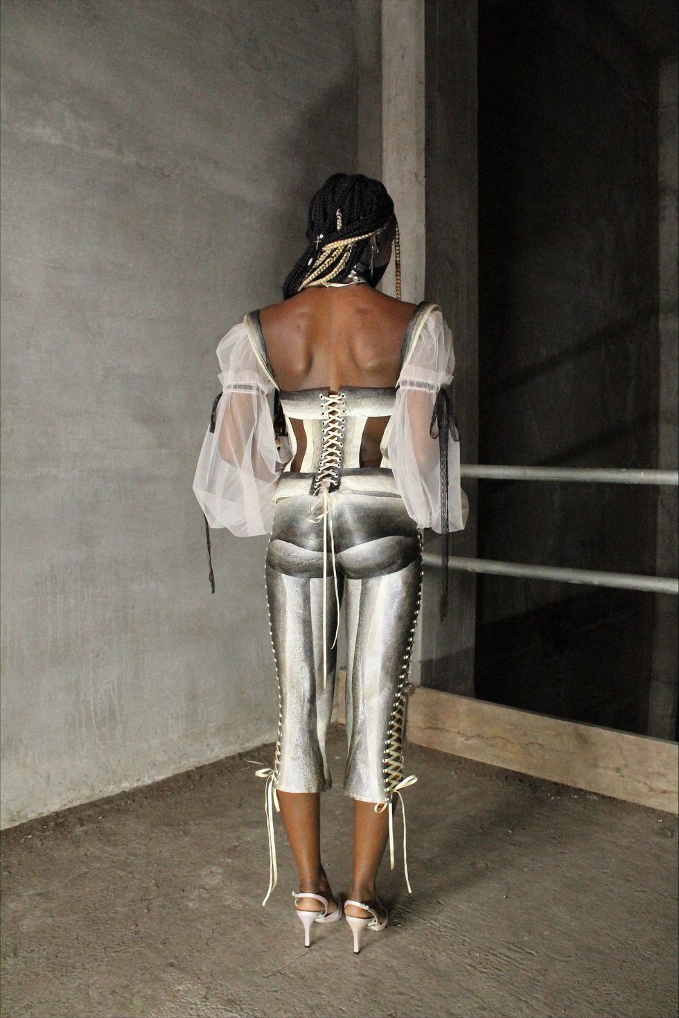 After the two-day curing process, Gracie formed the corset and set it to dry. She meticulously added embellishments and repeated the same process for the trousers.