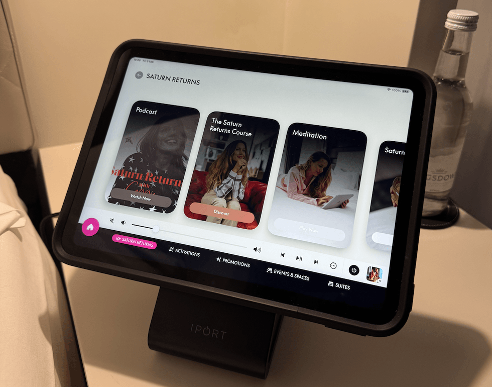 There's also a skincare set from Seabody (more on them, later), and the in-room tech is pre-loaded with meditations and curated episodes from the Saturn Returns podcast, plus a one-month membership so you can take it with you when you depart.