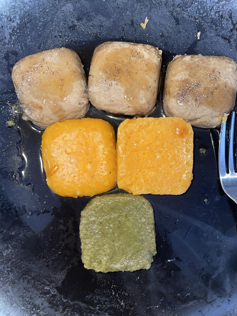The flavor of the broccoli and spinach square has a really fresh and crisp taste, but again it seems that the broccoli and spinach squares' texture hasn't been coming out the best, no matter the choice of preparation.