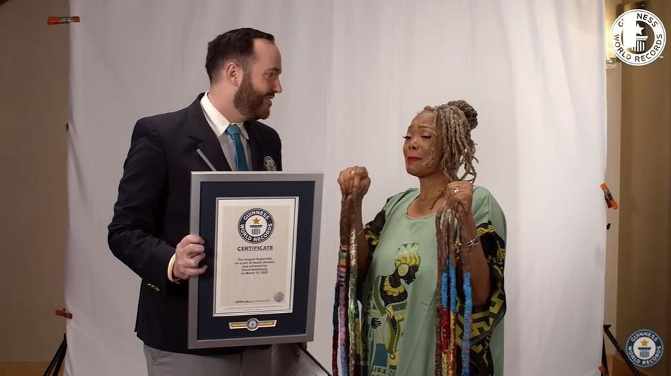 It means the record holder has the longest fingernails on a pair of female hands and the longest fingernails on a pair of hands ever but the achievement has a tragic backstory.