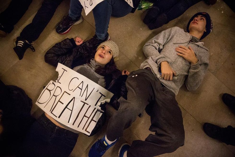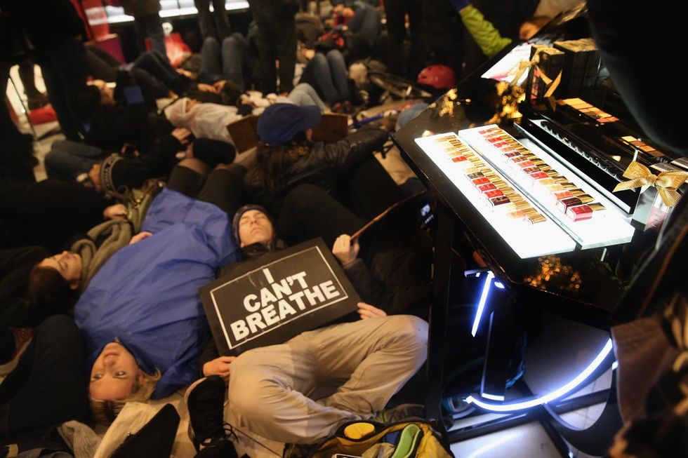 Protesters stage a Die In at the Apple Store on New York's fifth avenue