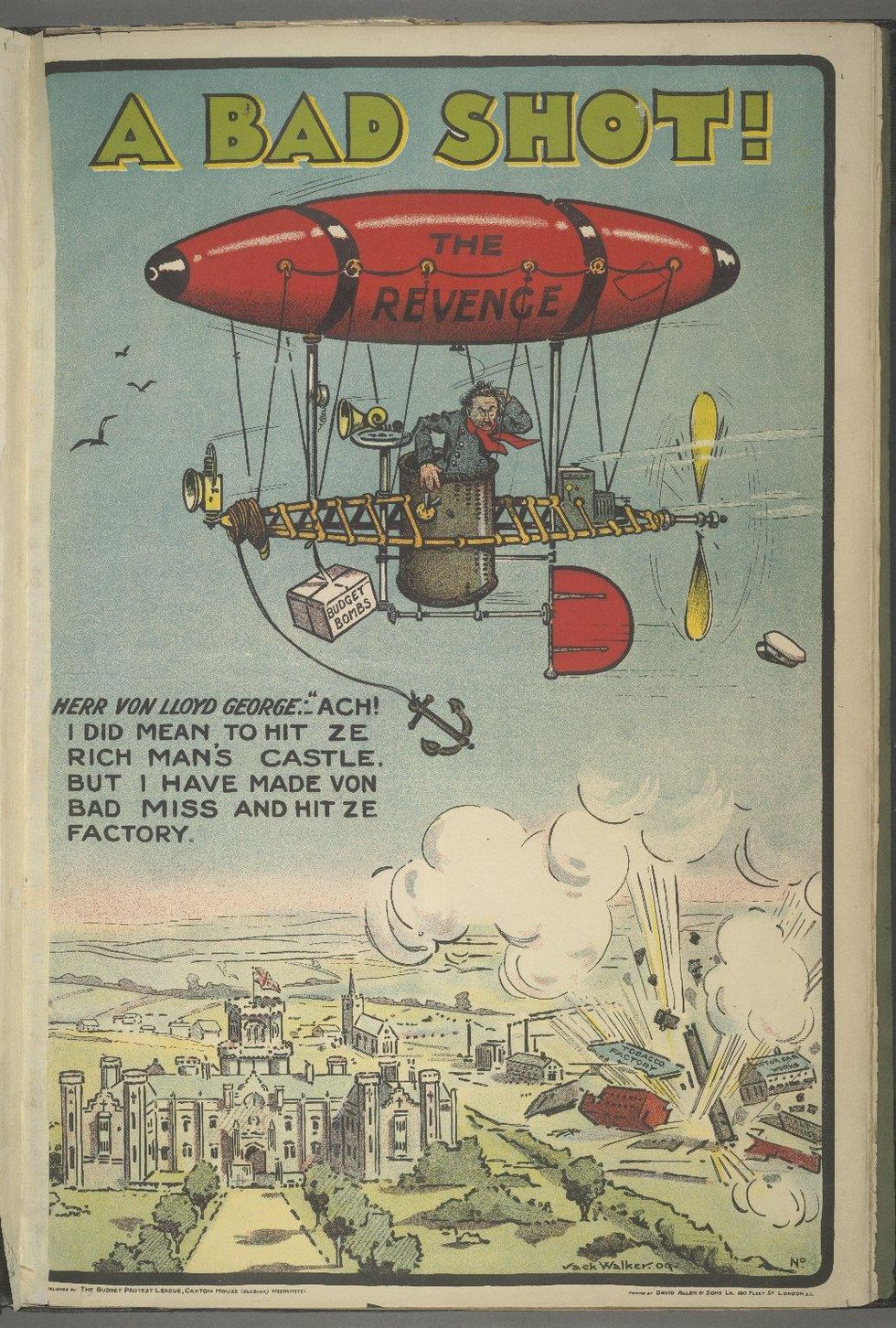 This poster was used to depict then chancellor, Liberal Lloyd George, as an ignorant German bomber.