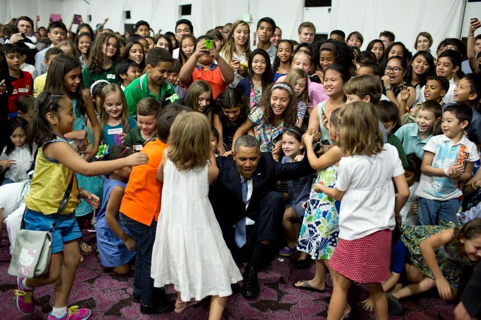 President Obama playing with children at the US Embassy in Manila, the Philippines, 28 April 2014.