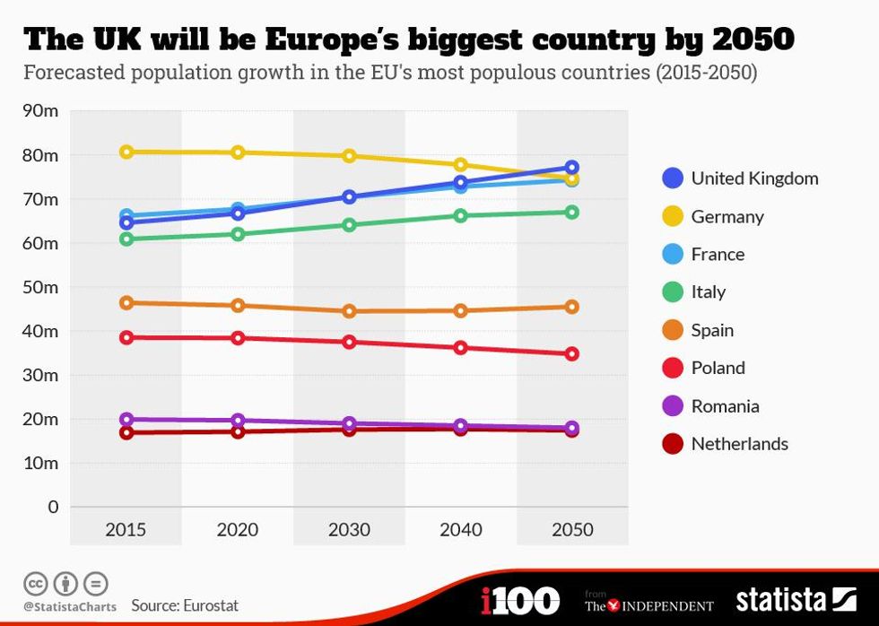 6.Britain is on course to overtake Germany as Europe’s most populated country.