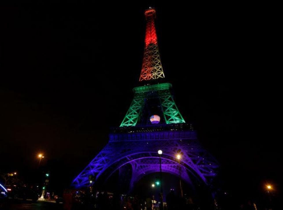 The Eiffel Tower is lit up to commemorate the victims of the Orlando shooting.