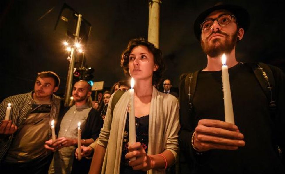 People hold candles during a vigil for the victims of the Orlando club shooting.