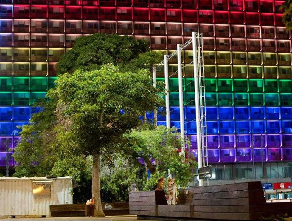Tel Aviv City Hall is lit up to show solidarity with the victims of the Orlando shooting.