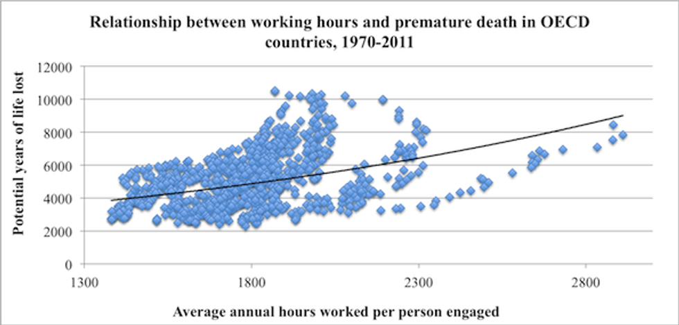 Research by the OECD in 2014 suggested a significant relationship between working hours and “potential years of life lost”, a measure of premature death.