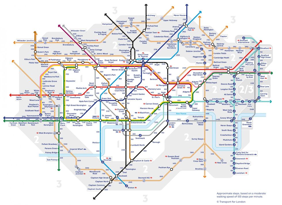 Transport for London (TfL) have unveiled a Tube map with official distances in steps between stations.