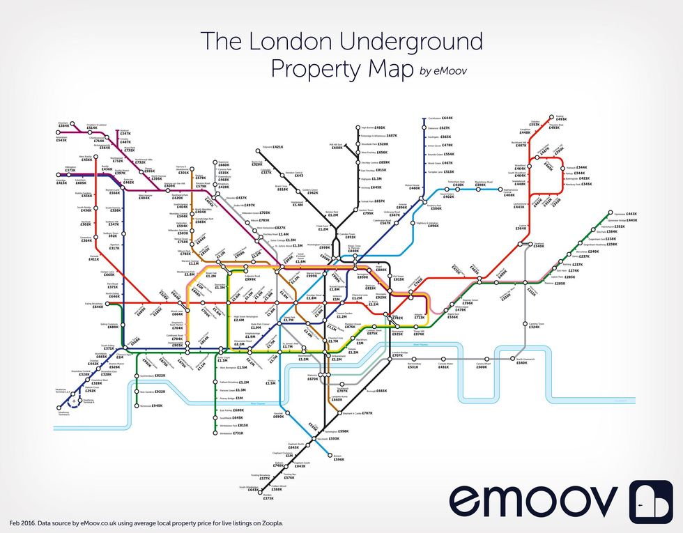 The map, taken from average local property prices listed on Zoopla in February, shows the extortionate prices of central London property.