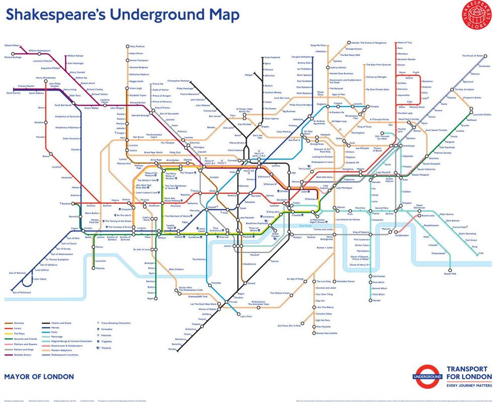 The lines are no longer 'Bakerloo', 'Victoria', or 'Northern', but instead take categories for characters and titles, such as 'Heroines', 'Lovers', 'Fathers and Kings' and 'Modern Adaptations'.