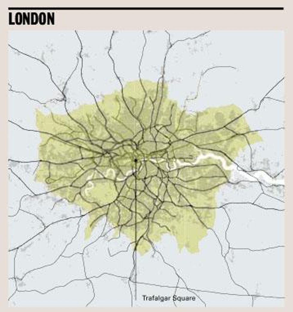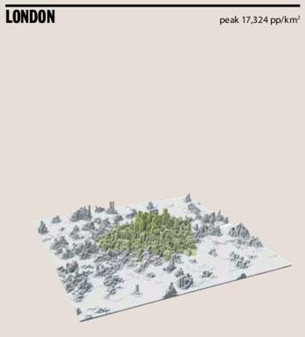 But what the graphic shows is that the population of London is relatively spread out, rather than densely packed housing in the centre of the city - like Manhattan for example.