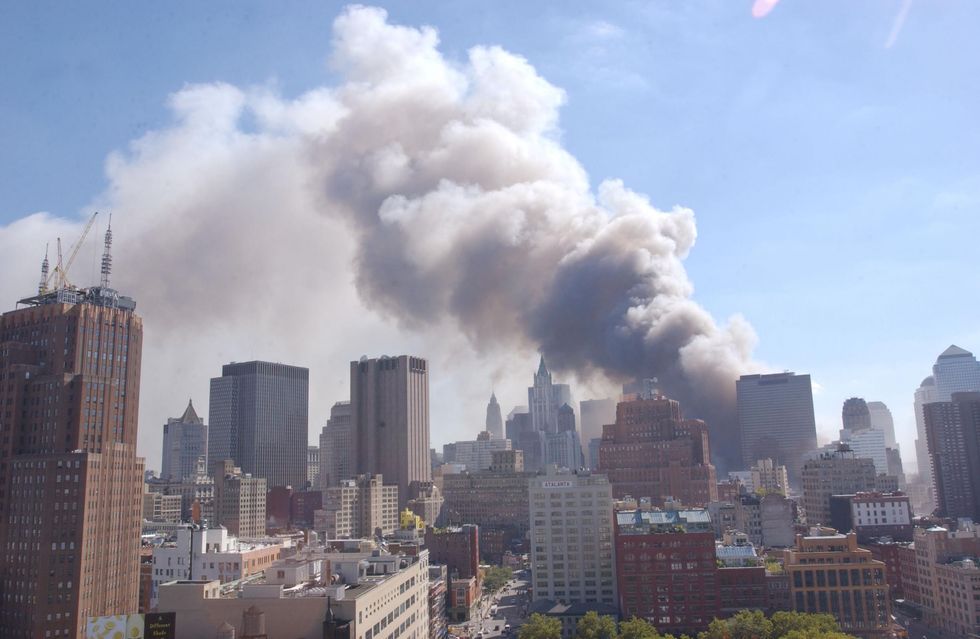 As they collapsed, a cloud of 'toxic' debris flooded lower Manhattan.