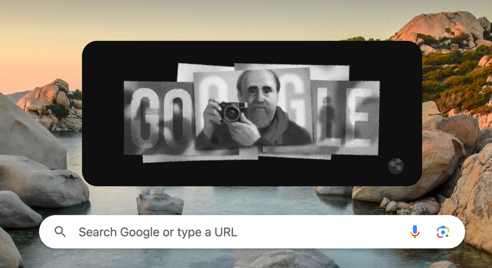 The Google description reads: "Today's Doodle celebrates French Iranian photographer and journalist Abbas Attar, whose photojournalism chronicled the experiences and plights of communities around the globe."