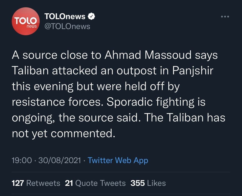 However, with tensions building and the rapid escalation of Taliban control, sources have said that the battle between the Taliban and NRF has now begun.