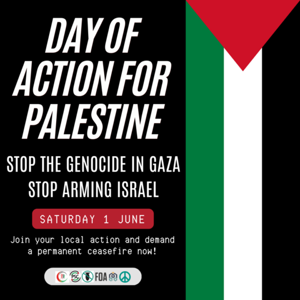 Saturday 1 June marks a Day of Action For Palestine with branches across the country taking part.