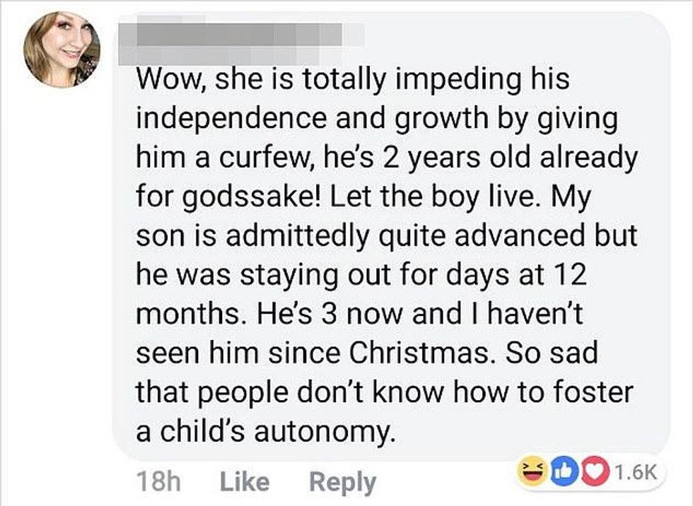 I mean, why not let a two year [old] live outdoors unsupervised?