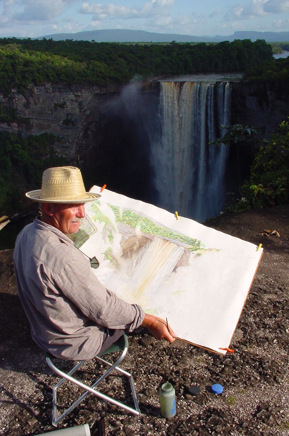 Over the course of his career he has been on 19 trips around the world including painting all three faces of Everest. On one occasion he spent 23 days in a single location in the restricted access area of the Grand Canyon to paint a 5x7ft canvas.