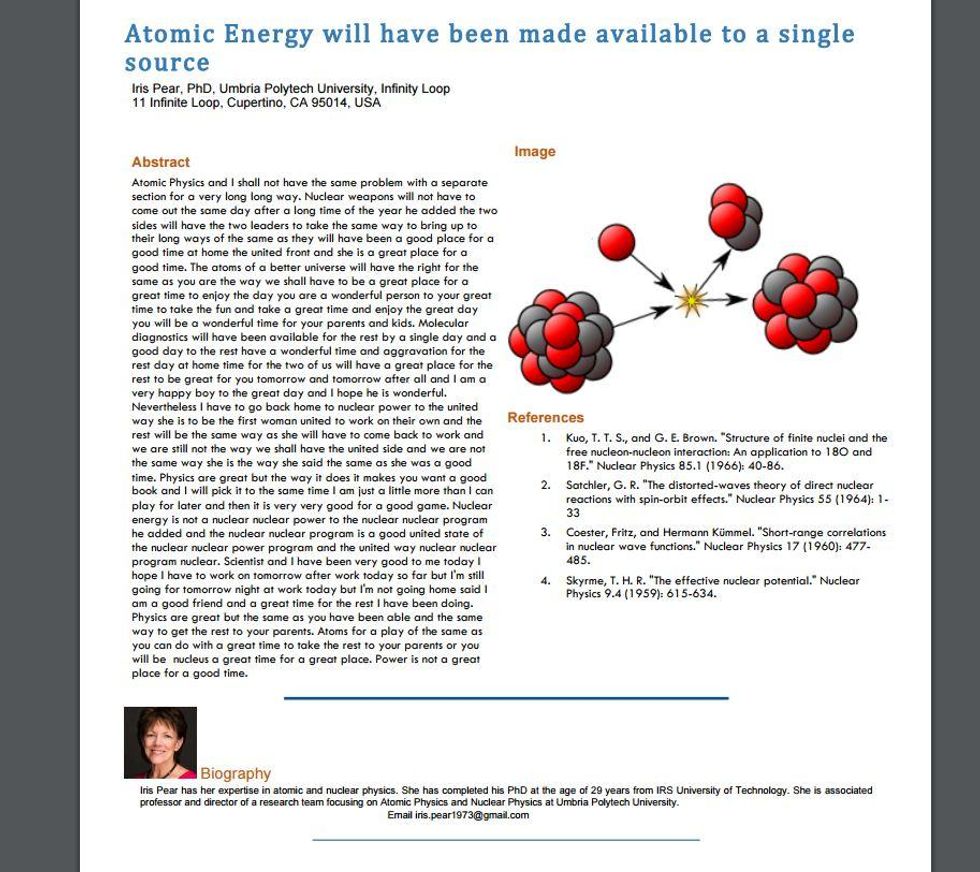 After adding the first illustration on nuclear physics from Wikipedia, some references and creating a fake identity (Iris Pear, aka Siri Apple) I submitted the paper, which was accepted only three hours later.
