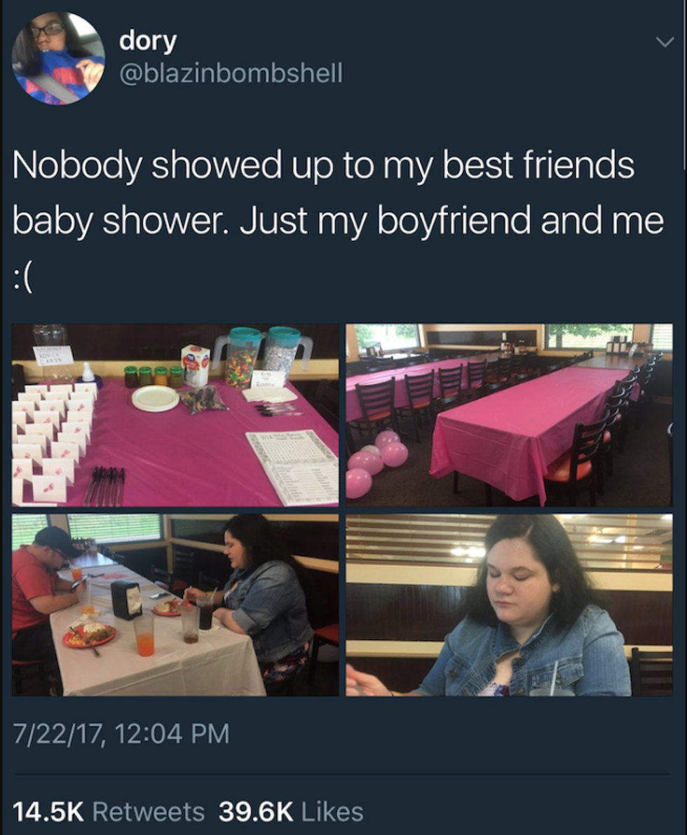 On 22 July, Dorothy Holmes of Zanesville, Ohio, took to Twitter to share a heartbreaking image of her 'best friend' and expectant mother Chelsie Collins, which purported to show her all alone at her baby shower, reports The Times Recorder.