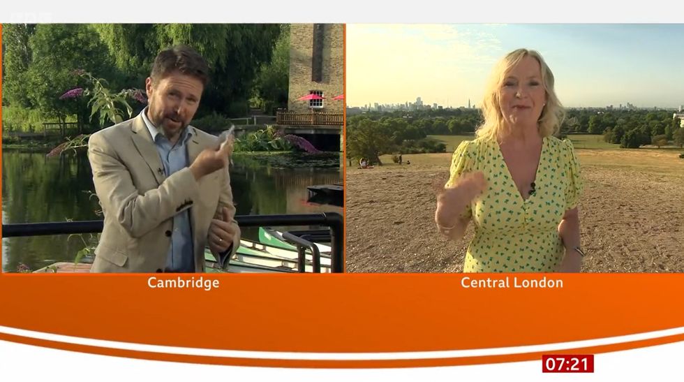 After asking weather presenter Kirkwood for her top tips on keeping cool during the heatwave, he said: “Carol, have you got any tips for removing bird poo from linen jackets? Because I’ve just been splatted by a pigeon…”