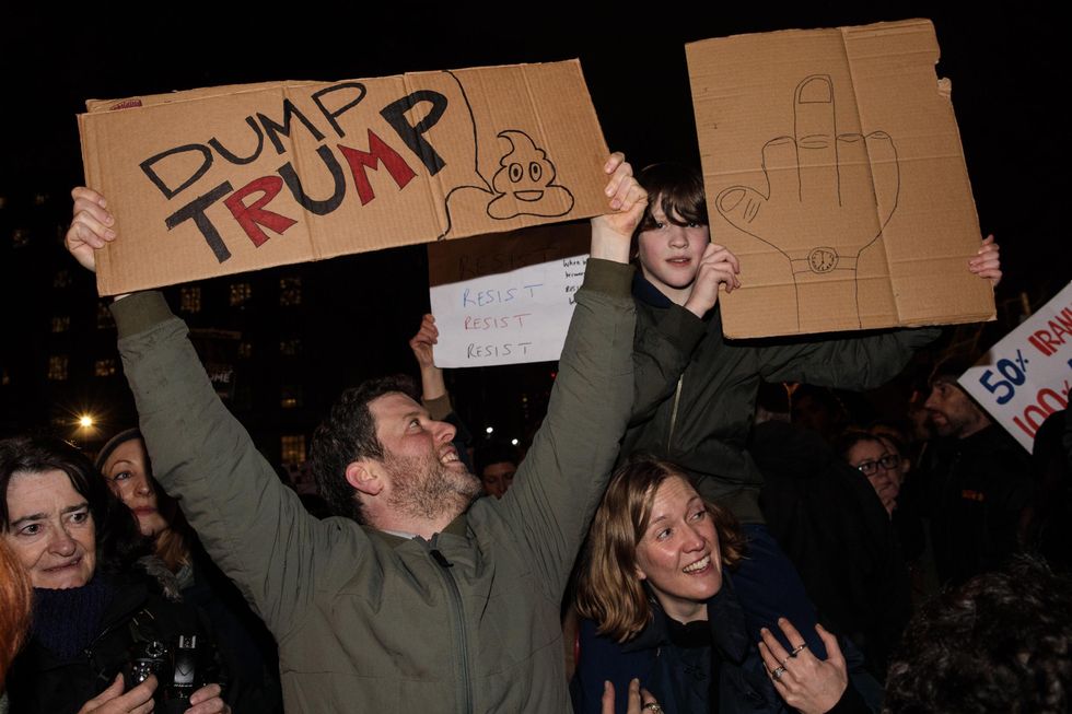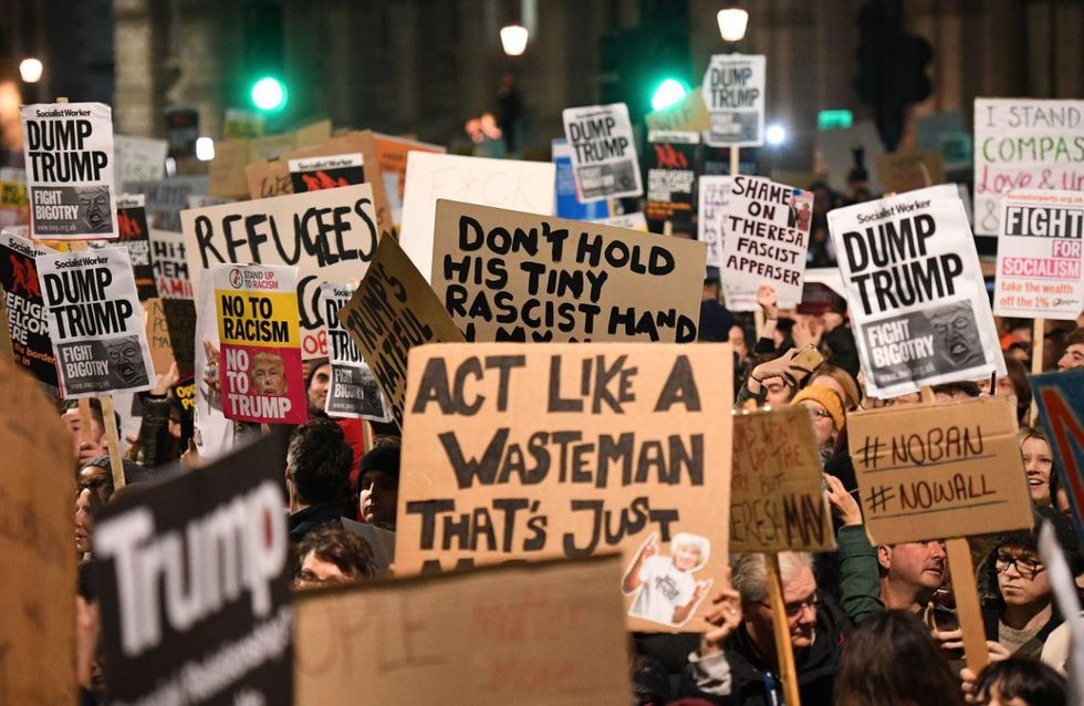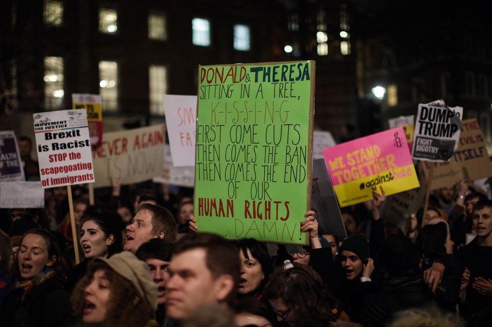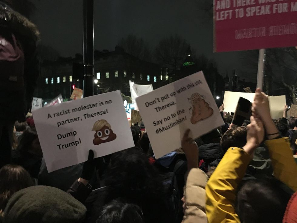 Last night, thousands of people took the streets around Whitehall, and across the UK, to protest US President Donald Trump's immigration ban and to urge the UK government to stand up against it.