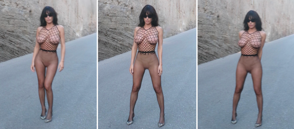 Censori recently posted a series of snaps on her Instagram to her 493,000 followers where she's wearing a risqué outfit which includes a transparent fishnet top and pantyhose stockings, and she accessorised the look with high-heeled shoes and black sunglasses.