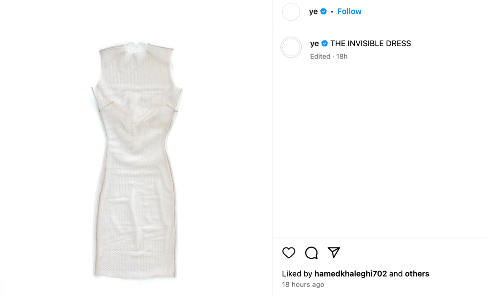 On Wednesday (5 February), West shared a photo of a garment with his followers. And it was fittingly called the 'invisible dress'.