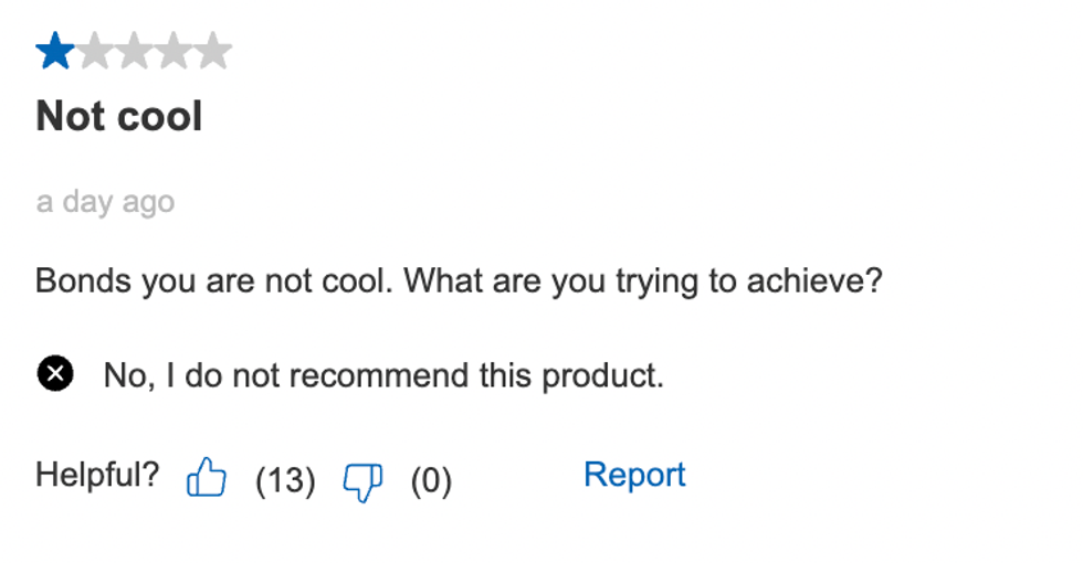 "Excited to never buy Bonds again," one person chimed in, while another riled: "I'm done with Bonds! You're not inclusive at all, you push the agenda of the minority and the majority will not follow! As the saying goes 'go woke, go broke' – you can join the ranks of Buzz Light beer in your own demise."