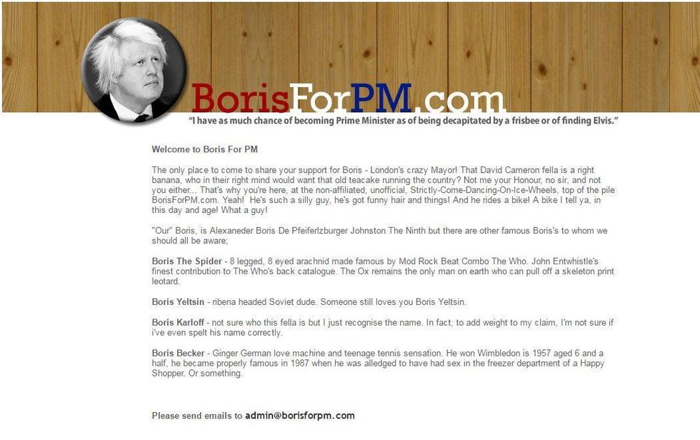 That David Cameron fella is a right banana, who in their right mind would want that old teacake running the country? Not me your Honour, no sir, and not you either... That's why you're here, at the non-affiliated, unofficial, Strictly-Come-Dancing-On-Ice-Wheels, top of the pile BorisForPM.com.