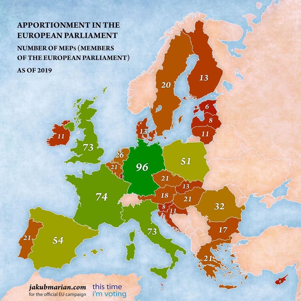 The narrative from brexiteers has often been that Britain has no say within the EU, hence the desire to leave. But in addition to a veto over most major decisions, this map by Jakub Marian reveals that – up until today – Britain had the third most MEPs in the EU parliament.